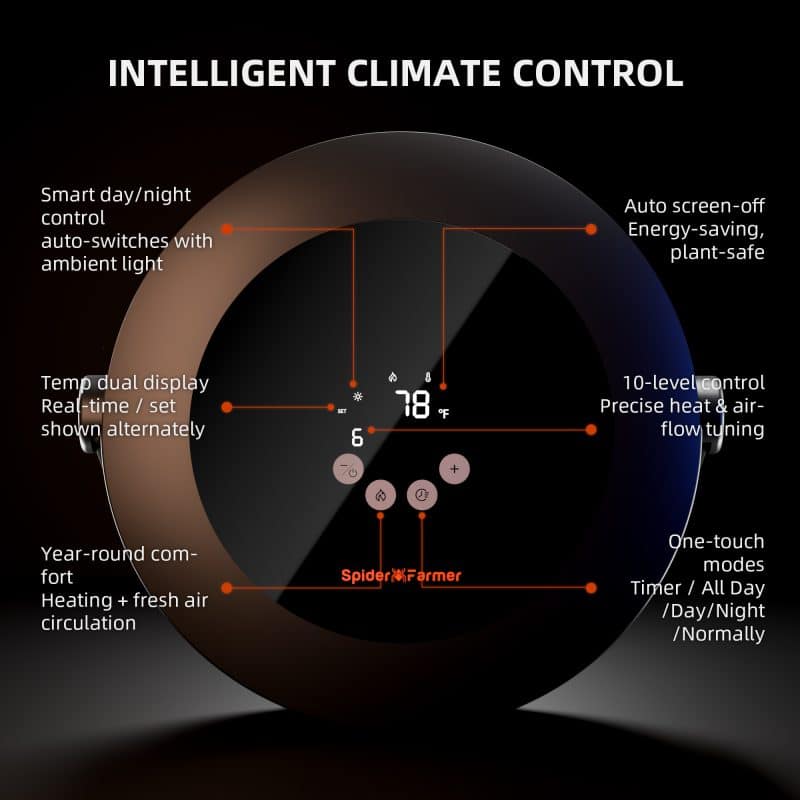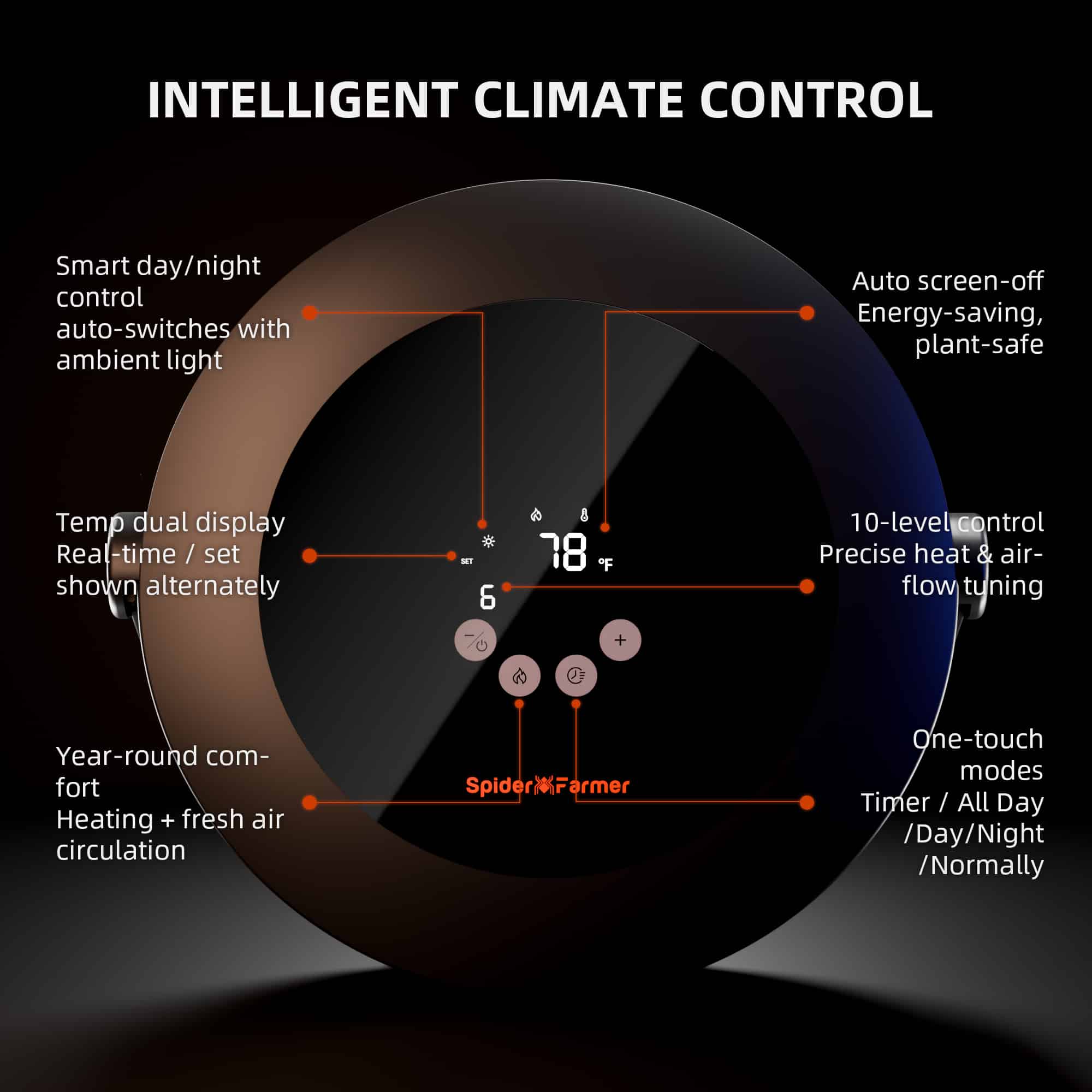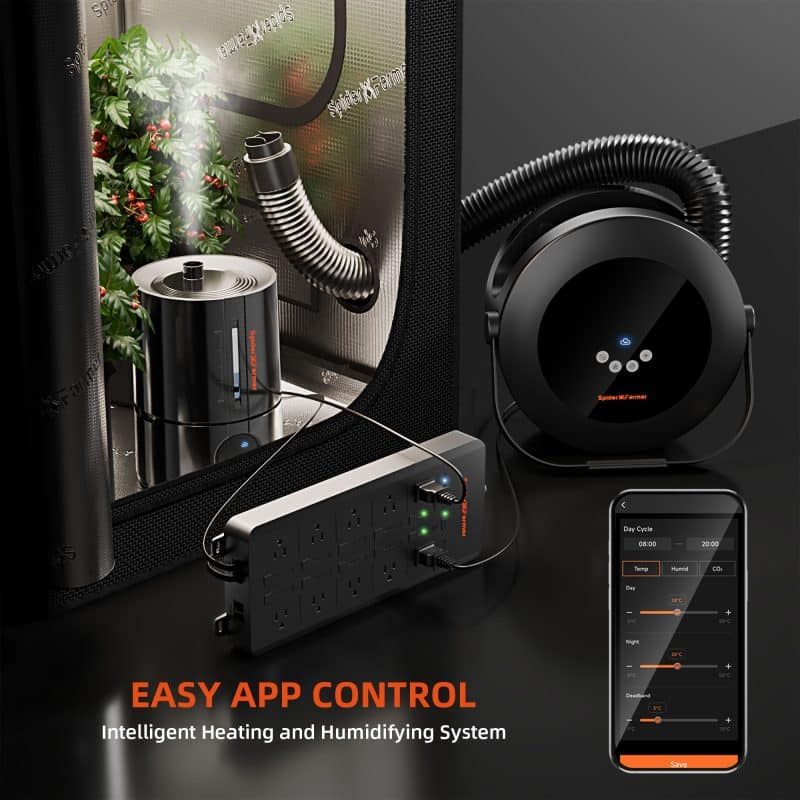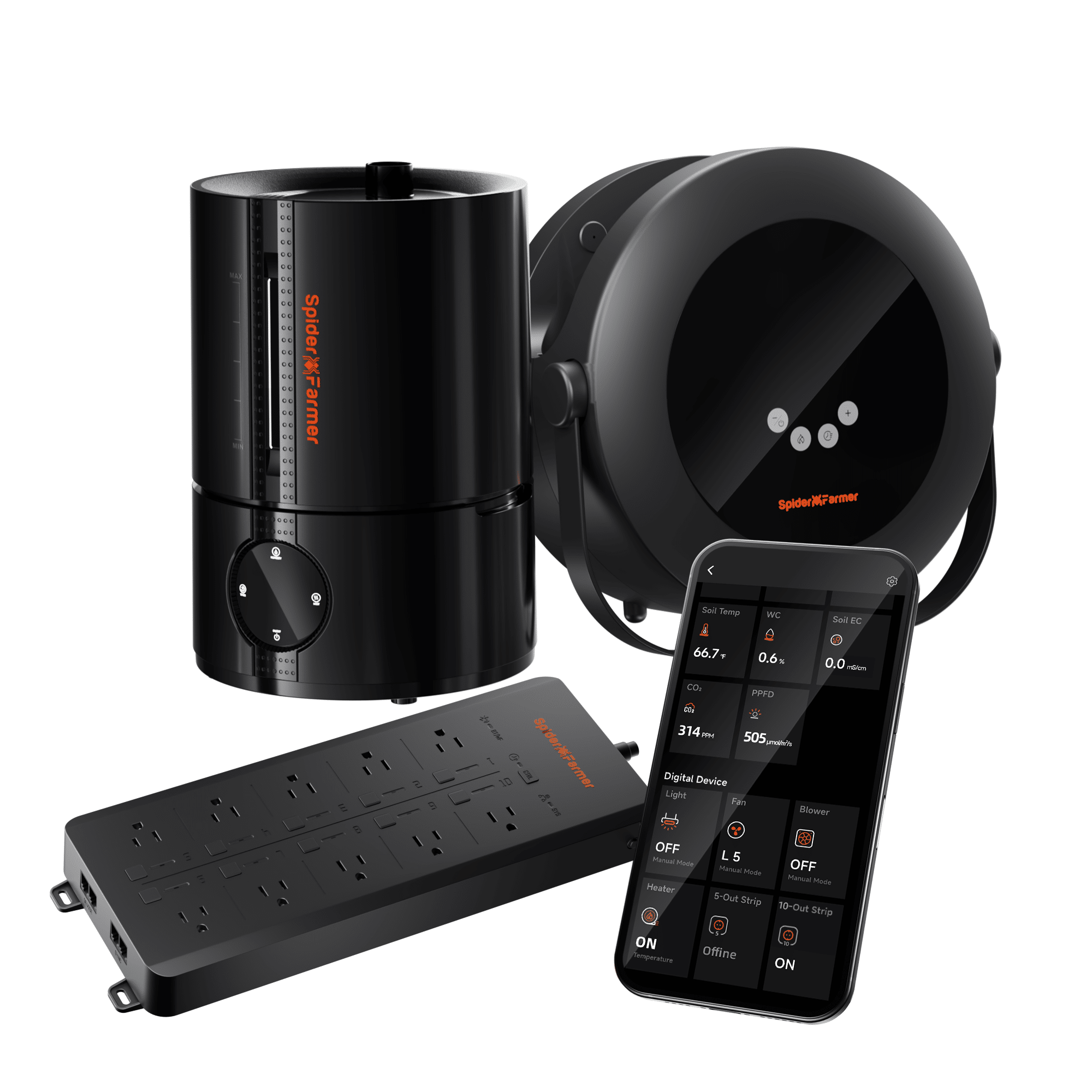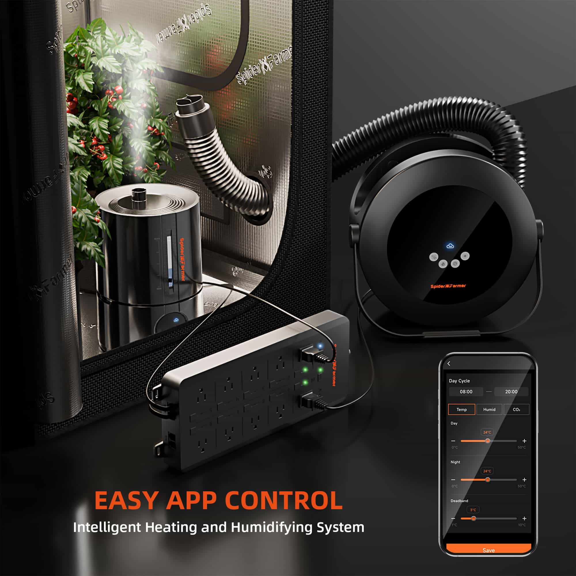 Seamlessly connect with the Spider Farmer App for remote control. Adjust heater temperature, humidifier mist levels, or schedules anytime, anywhere. (Note: Since the GGS power strip already links to the GGS temperature and humidity sensors, please unplug any built-in sensors from connected devices to ensure unified control.)